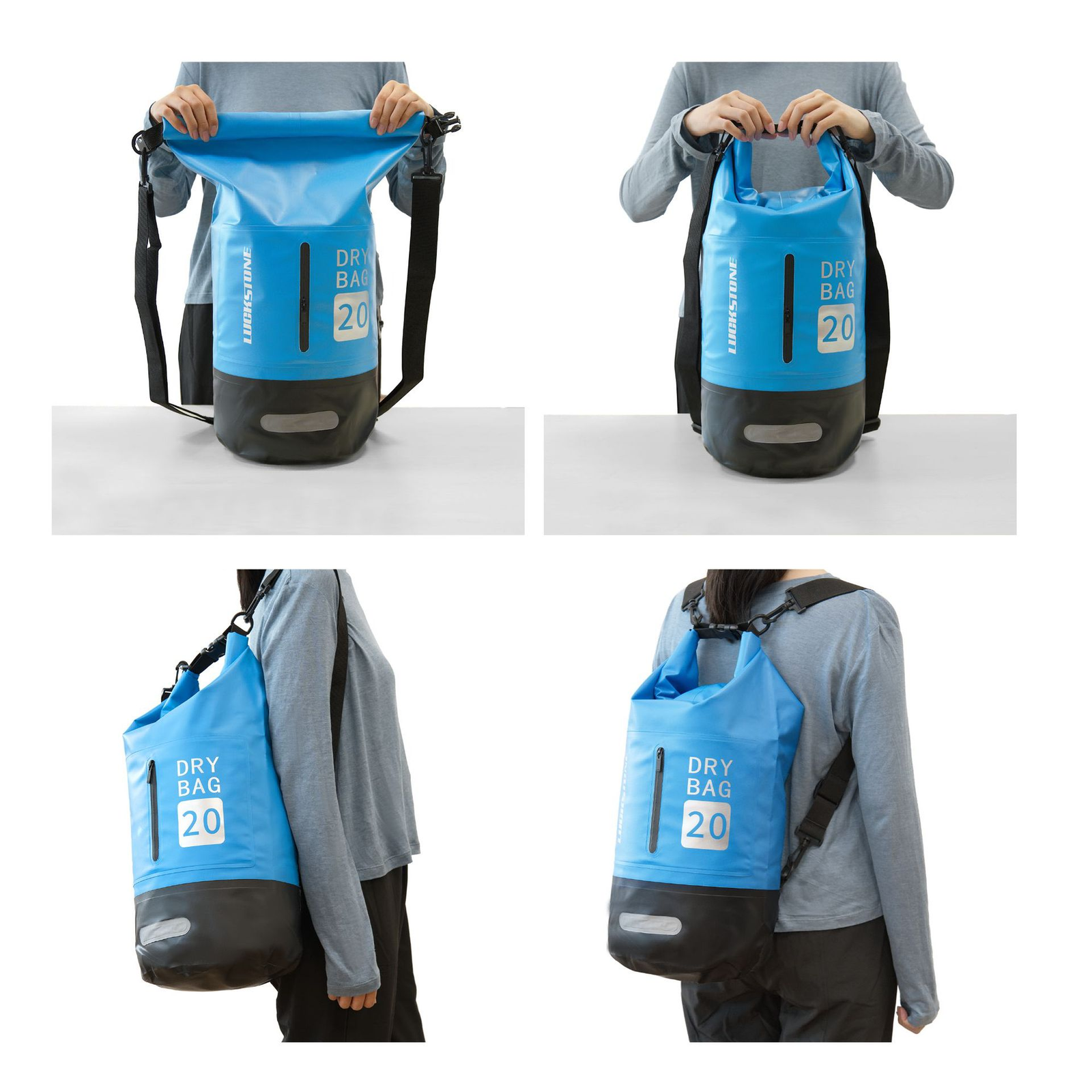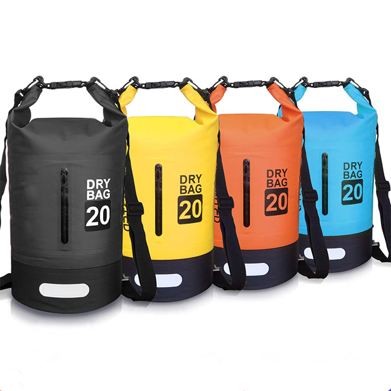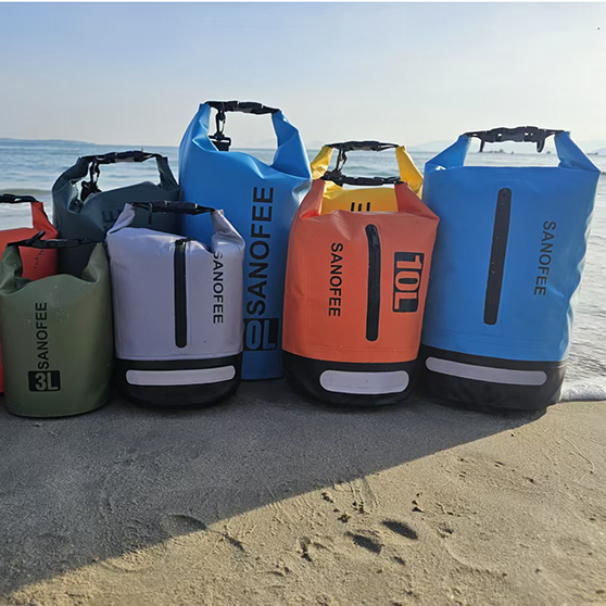 10L waterproof dry bag made of 500D PVC tarpaulin, with double zippers & extra pockets for organized storage. Lightweight, fully waterproof for outdoor travel, camping & sports. Supports logo customization, flexible MOQ for bulk orders.
